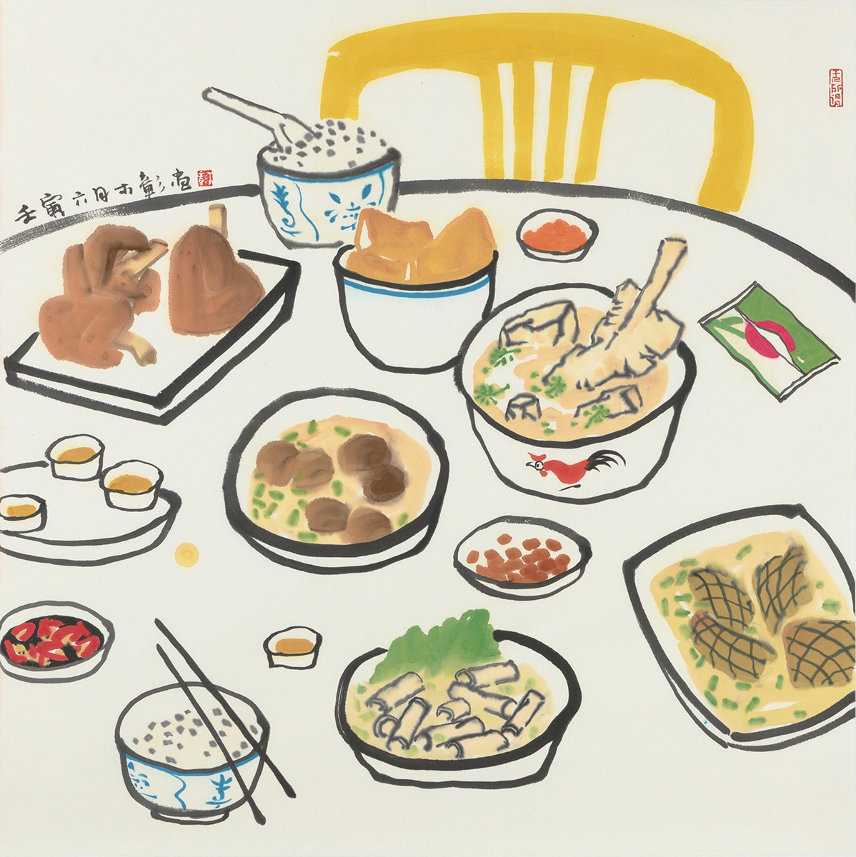 “One symbol is the 油条 (you tiao) (fried dough), a repeated motif in A Flavoured Life 煎炸人生 (jian zha ren sheng). These fried dough snacks are made by submerging lengths of dough into boiling oil, and they twist and burn before metamorphosing into their final golden form. Such a process of immersive refining echoes the life journey of working hard while navigating mountains and valleys in hopes of (unpromised) success.”