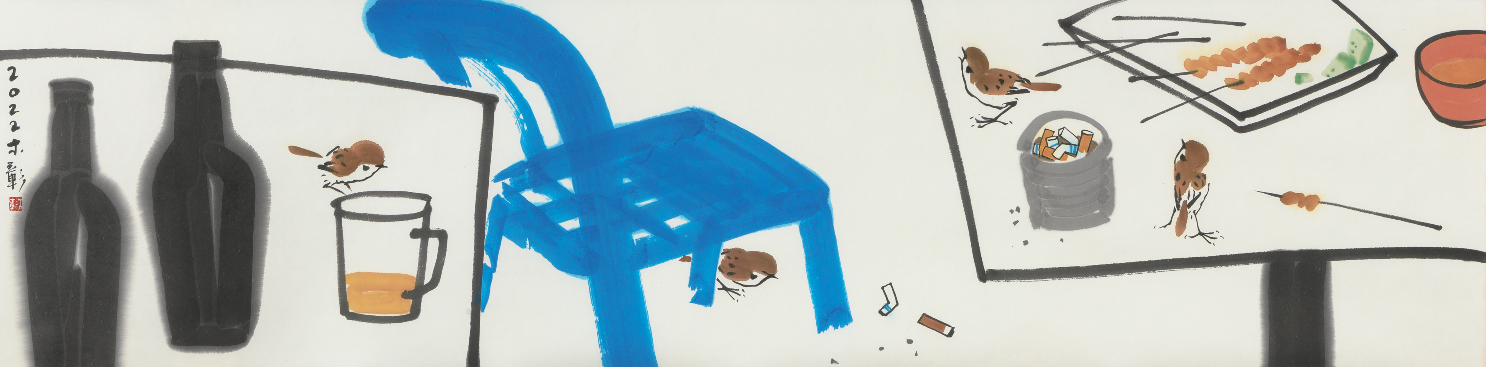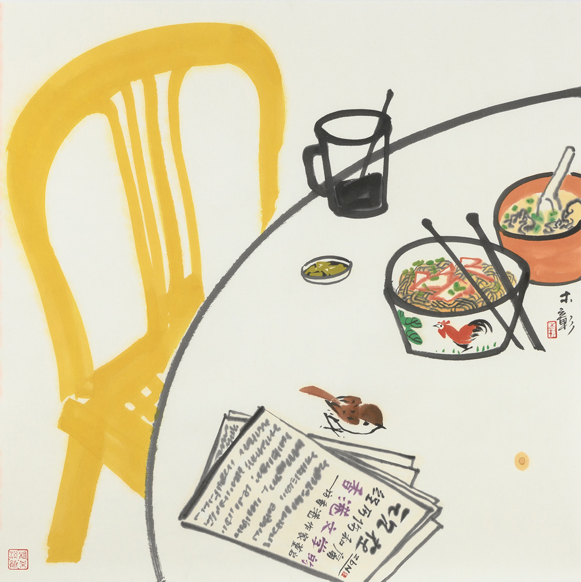 Ink and colour on paper